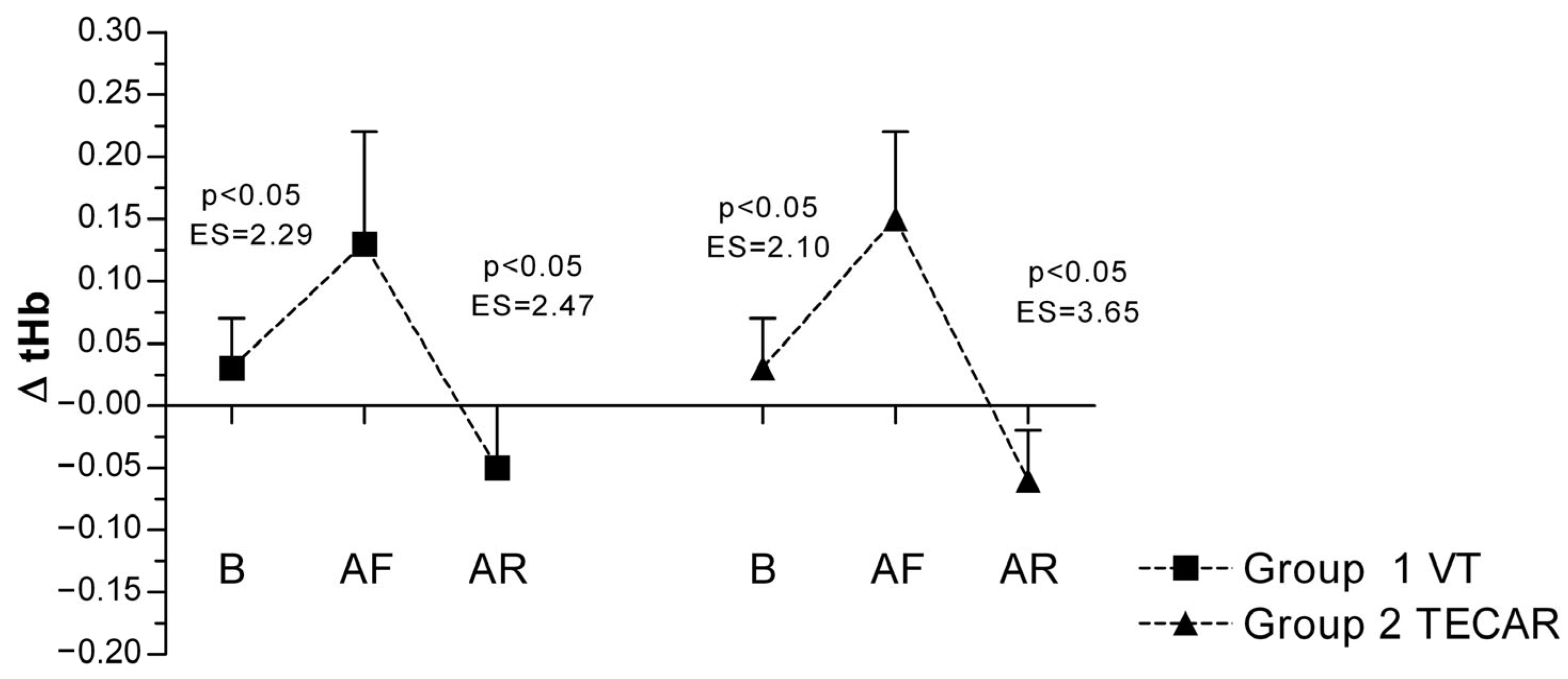 - Change in hemoglobin level during occlusion (ΔtHb): defined as the difference between the average tHb value in the last five seconds and the first five seconds of the occlusion phase:
