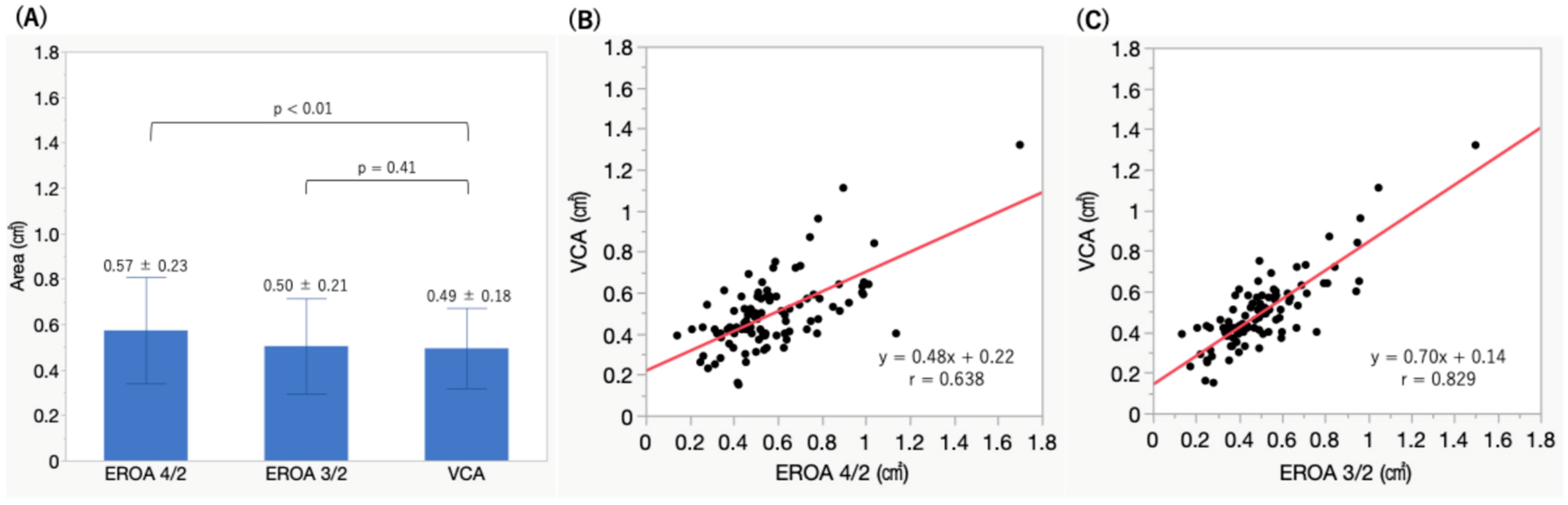 3.2. Comparison of EROA Measured by Different Methods with VCA