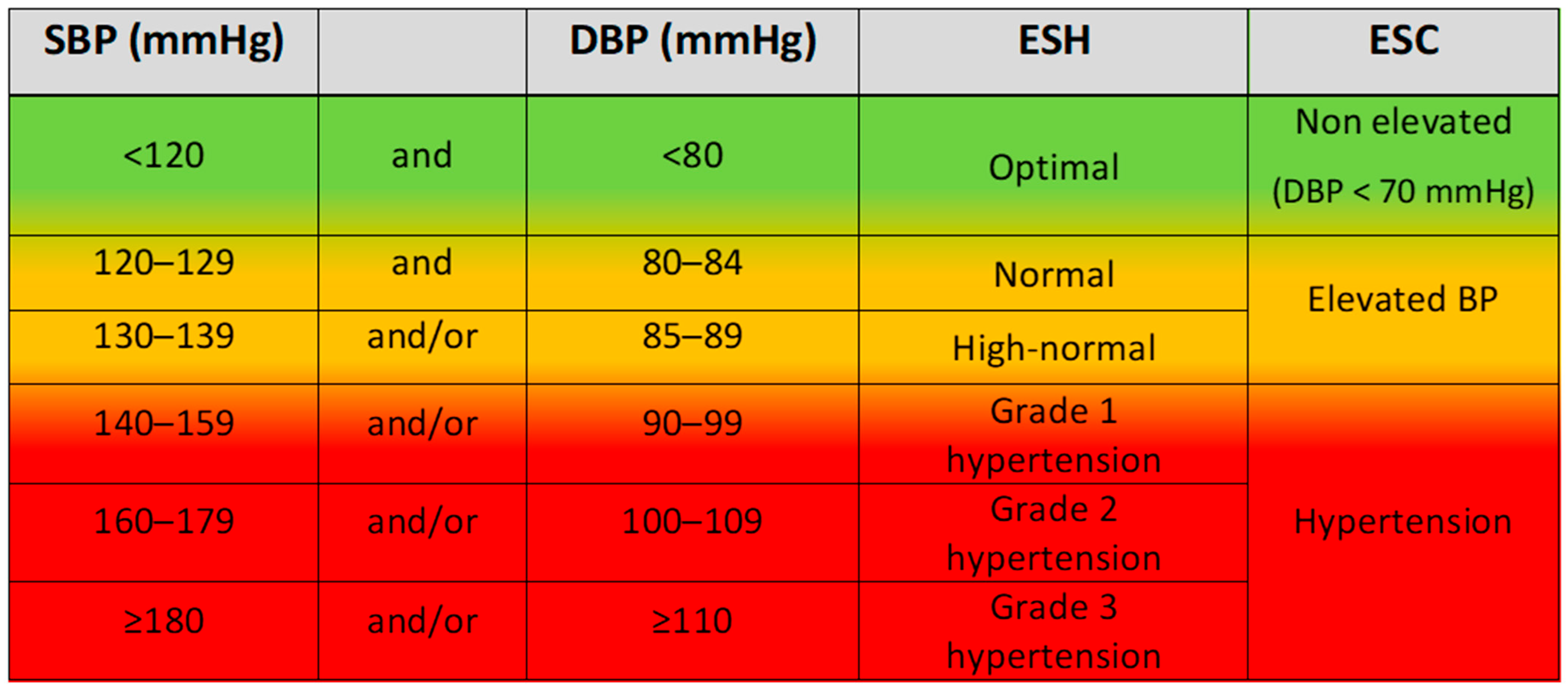 - Mancia, G.; Kreutz, R.; Brunstrom, M.; Burnier, M.; Grassi, G.; Januszewicz, A.; Muiesan, M.L.; Tsioufis, K.; Agabiti-Rosei, E.; Algharably, E.A.E.; et al. ESH Guidelines for the management of arterial hypertension. The Task Force for the management of arterial hypertension of the European Society of Hypertension. J. Hypertens. 2023, 41, 1874–2071. [Google Scholar] [CrossRef] [PubMed]