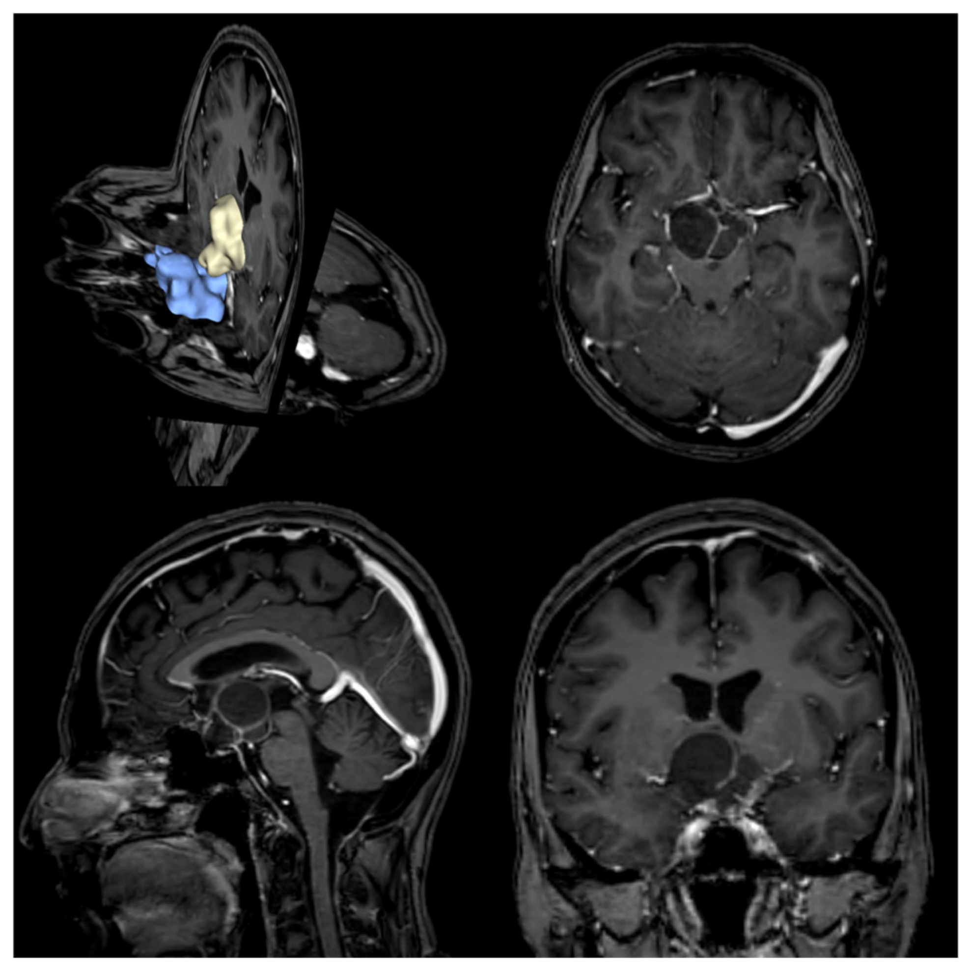 - Jensterle, M.; Jazbinsek, S.; Bosnjak, R.; Popovic, M.; Zaletel, L.Z.; Vesnaver, T.V.; Kotnik, B.F.; Kotnik, P. Advances in the management of craniopharyngioma in children and adults. Radiol. Oncol. 2019, 53, 388–396. [Google Scholar] [CrossRef]