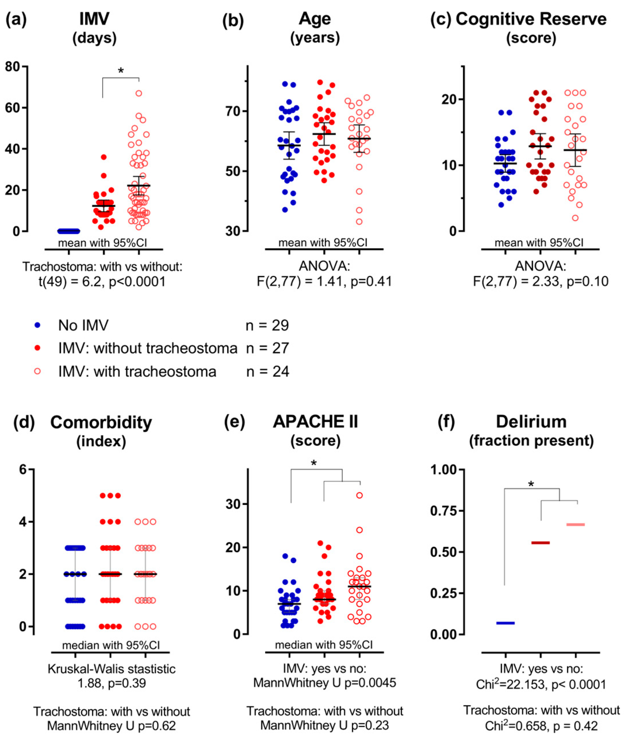 - For the IMV group with tracheostoma (n = 24):