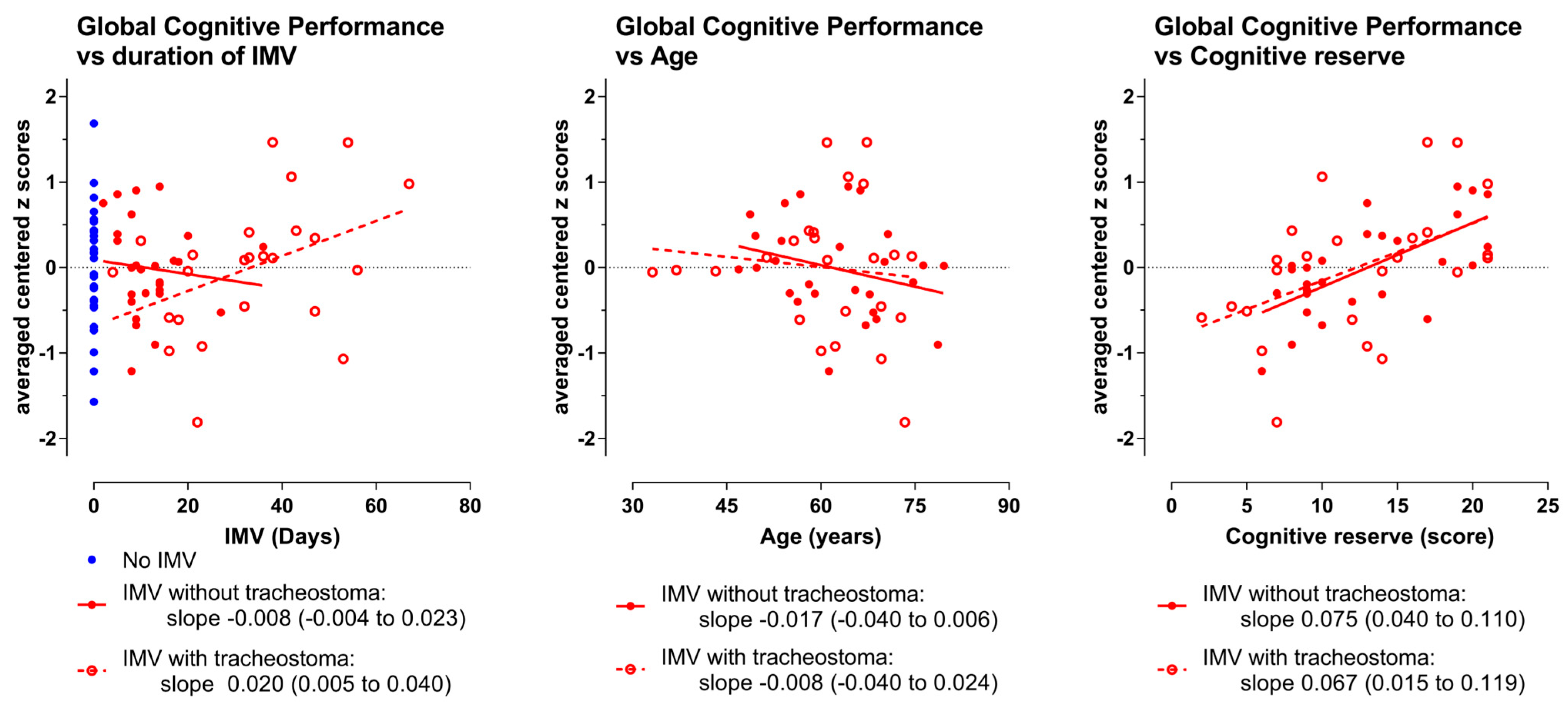 3.3. Main Analyses: GlobCogPerf Versus IMV Days, Moderator Age