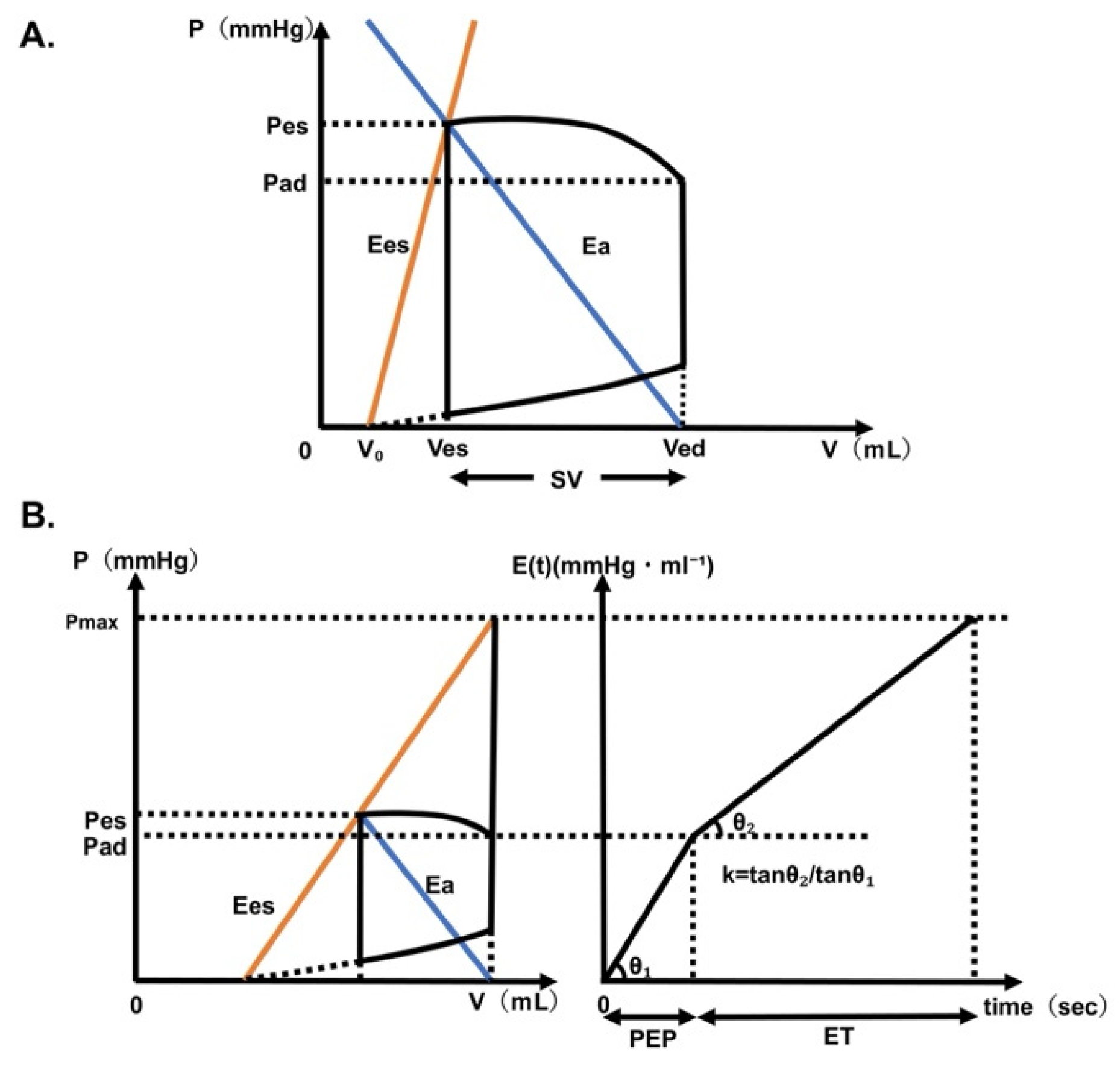 Furthermore, from the PV loop diagram, Ees can be expressed as follows:
