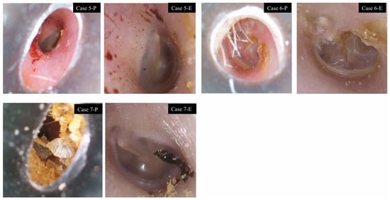 Images were also obtained using a video endoscope (VISERA ELITE II®, ENF-VH®, Olympus Corporation, Tokyo, Japan), which has a distal outer diameter of 3.2 mm and incorporates a 1-million–pixel sensor with a 110° field of view and a depth of focus of 5–50 mm. Microscopic images were captured using an operating microscope (OPMI PICO®, Zeiss Corporation, Oberkochen, Germany) equipped with an integrated HD camera (2 million pixels) providing HDMI output. During microscopic examination, either a standard otoscope speculum or a transparent plastic speculum was used to obtain an adequate view of the ear canal and tympanic membrane. All images were subsequently stored in the electronic medical record system (CITA, FUJIFILM Medical Co., Ltd., Tokyo, Japan).
