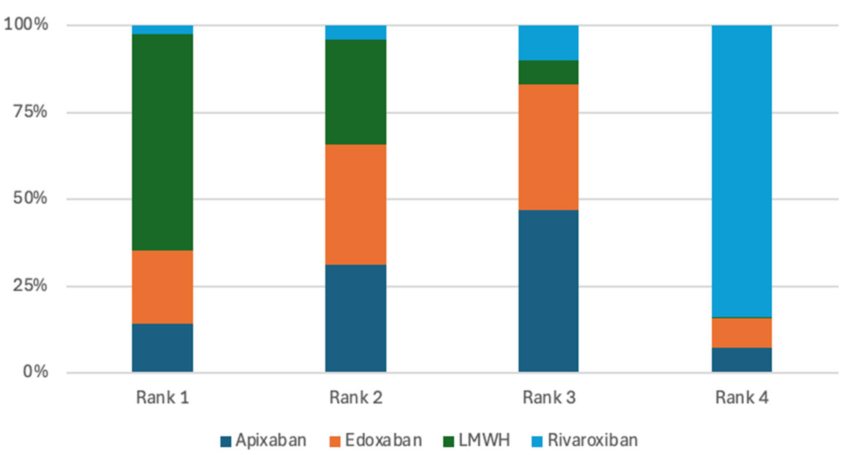 | Planquette et al. [12] | 2021 | Randomized, open-label, non-inferiority trial | 3 months | 158 | Rivaroxaban 15 mg twice daily for 3 weeks, then 20 mg once daily | Dalteparin 200 IU/kg once daily for 1 month, then 150 IU/kg once daily |