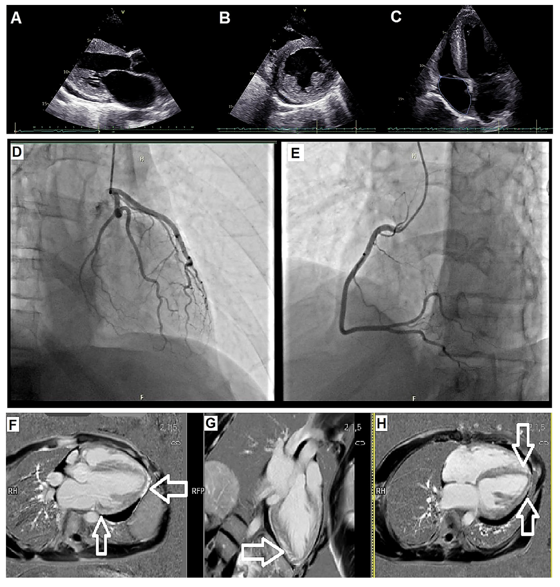 | Etiologic work-up | Exclusion of CAD; suspicion of systemic disorder | Coronary angiography; Fabry testing (α-galactosidase A); EMB | - |