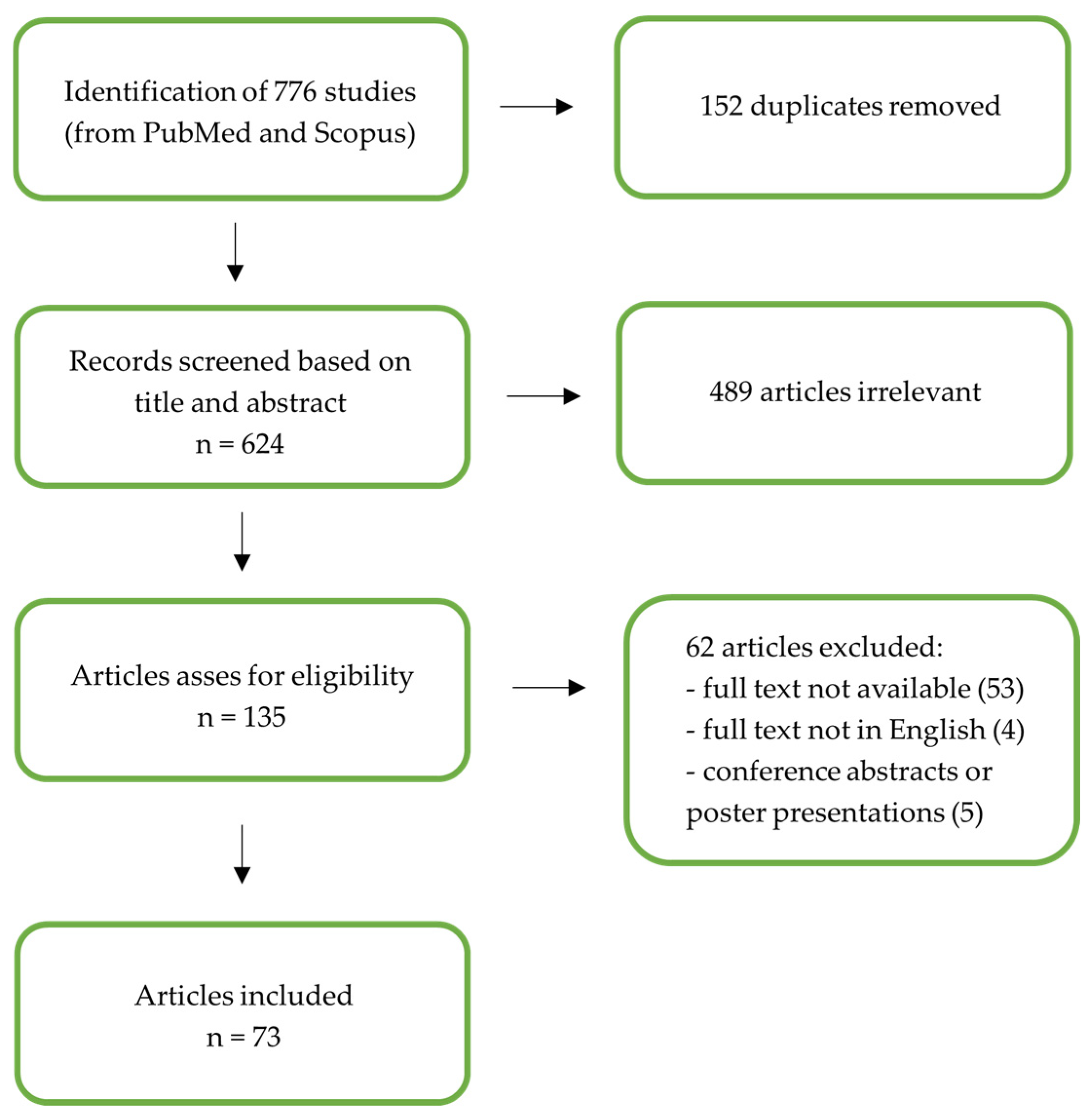 - Parazzini, F.; Viganò, P.; Candiani, M.; Fedele, L. Diet and endometriosis risk: A literature review. Reprod. Biomed. Online 2013, 26, 323–336. [Google Scholar] [CrossRef]