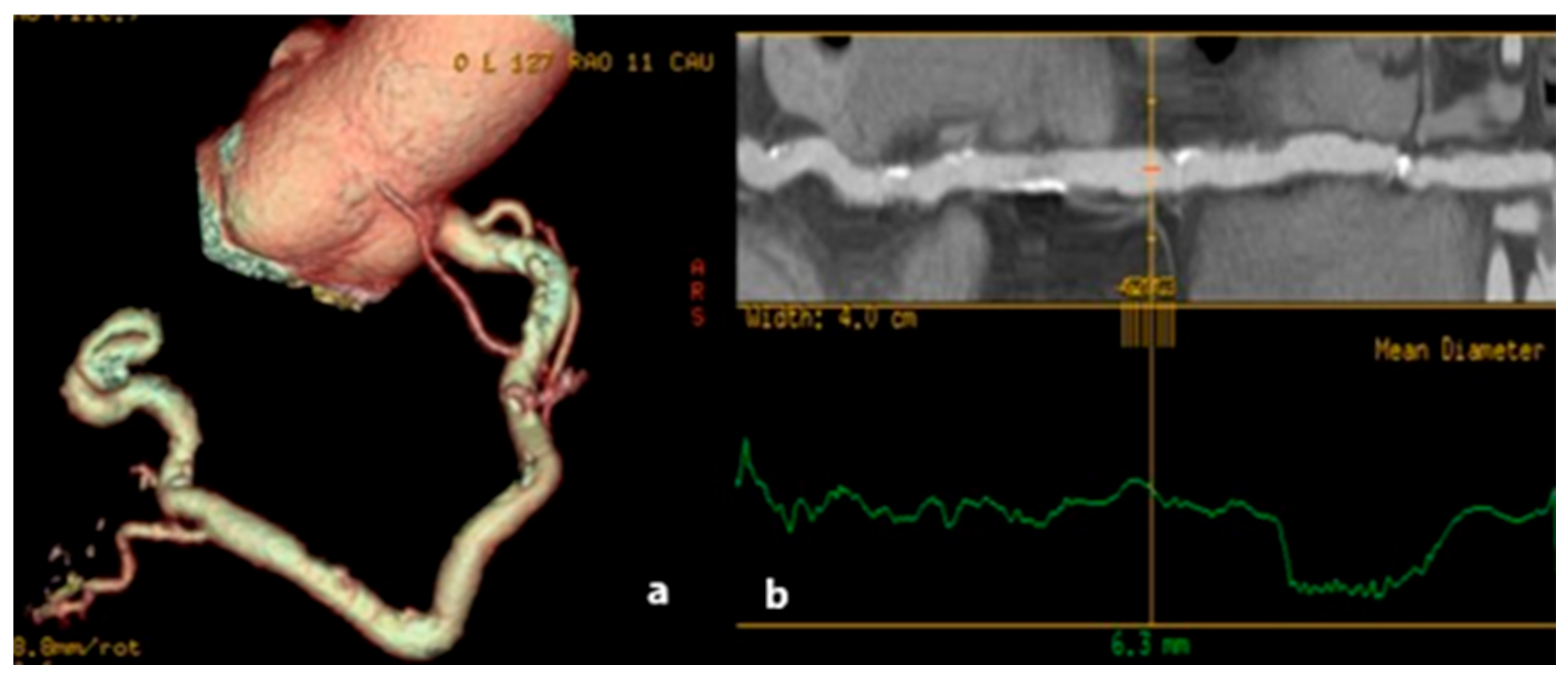 - Ahmad, M.; Mungee, S. Coronary Ectasia. In StatPearls; StatPearls Publishing: Treasure Island, FL, USA, 2023. [Google Scholar]