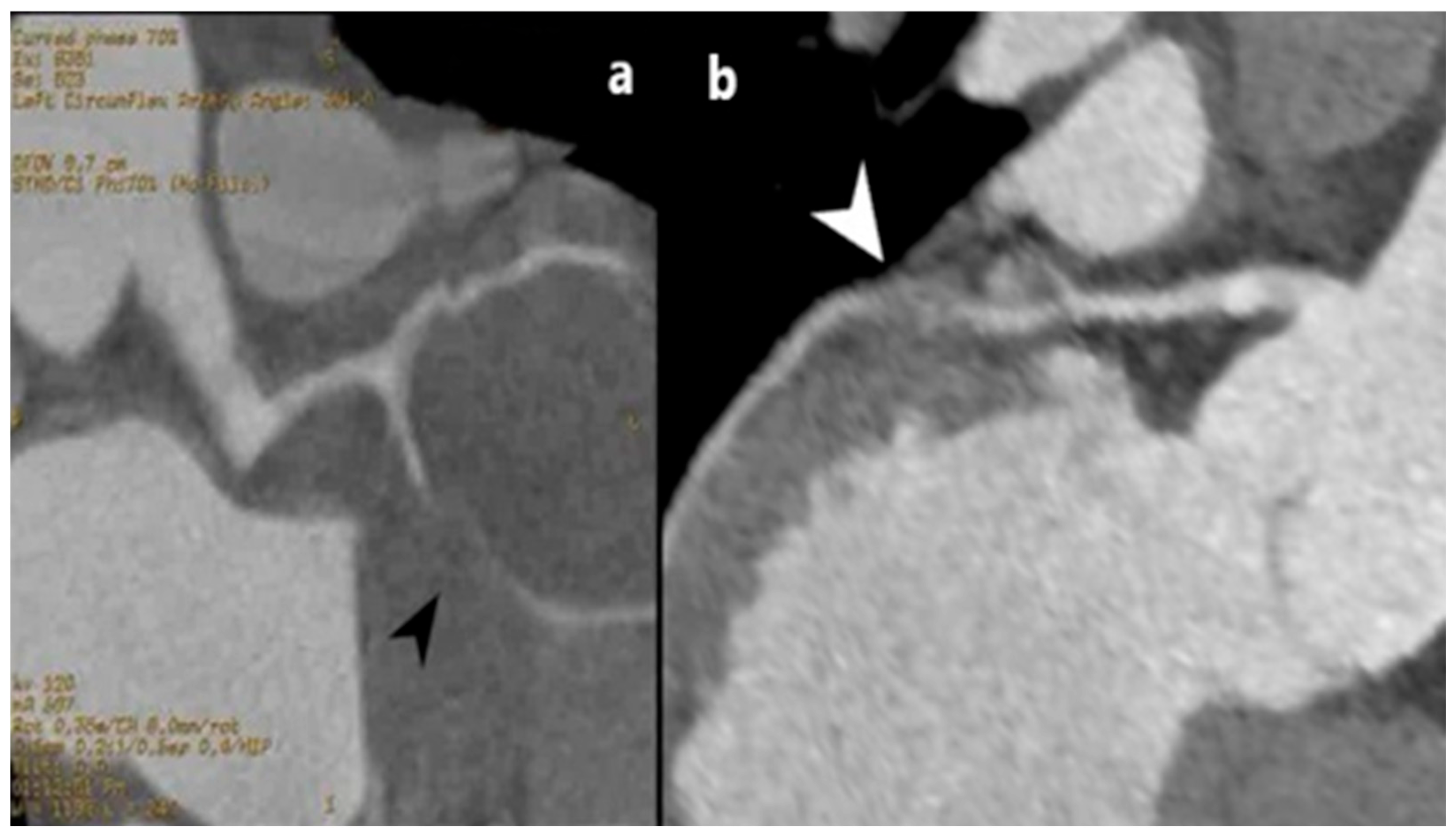 - Gupta, S.; Meyersohn, N.M.; Wood, M.J.; Steigner, M.L.; Blankstein, R.; Ghoshhajra, B.B.; Hedgire, S.S. Role of Coronary CT Angiography in Spontaneous Coronary Artery Dissection. Radiol. Cardiothorac. Imaging 2020, 2, e200364. [Google Scholar] [CrossRef]