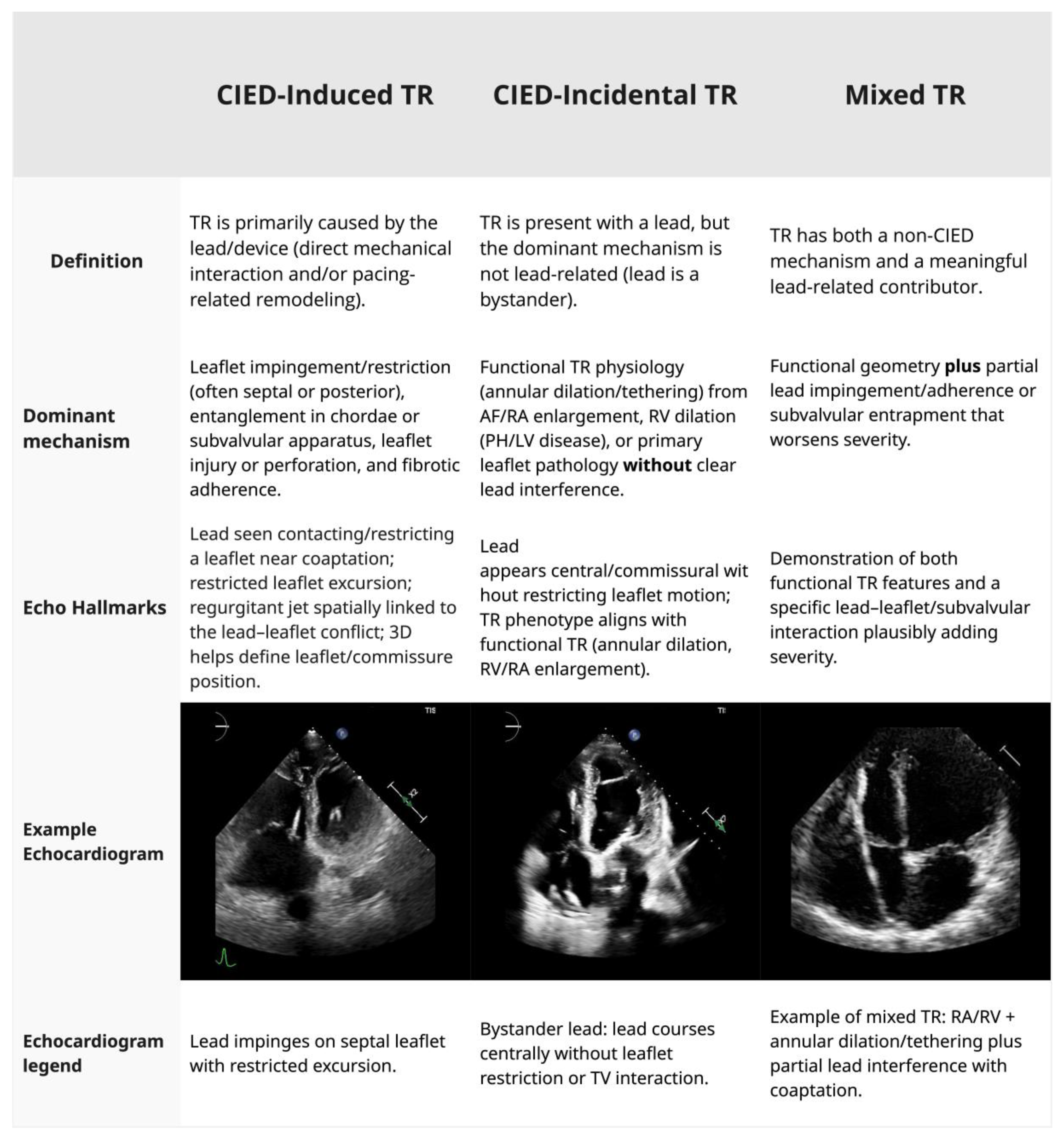 Accurate characterization of the TR mechanism in patients with CIEDs relies on a multimodality imaging approach.