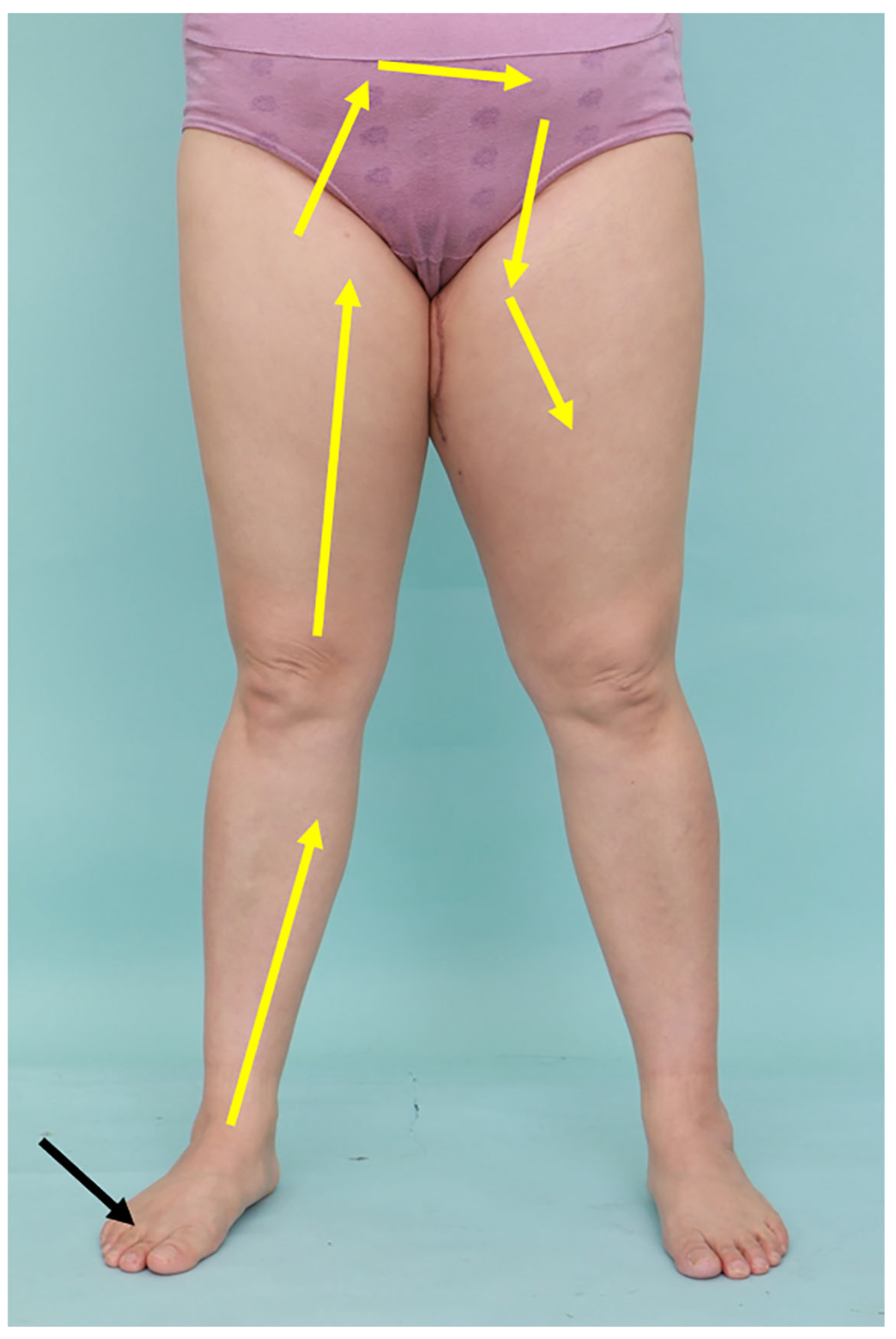 - Suehiro, K.; Morikage, N.; Murakami, M.; Yamashita, O.; Samura, M.; Hamano, K. Re-evaluation of qualitative lymphangioscintigraphic findings in secondary lower extremity lymphedema. Surg. Today 2014, 44, 1048–1055. [Google Scholar] [CrossRef] [PubMed]