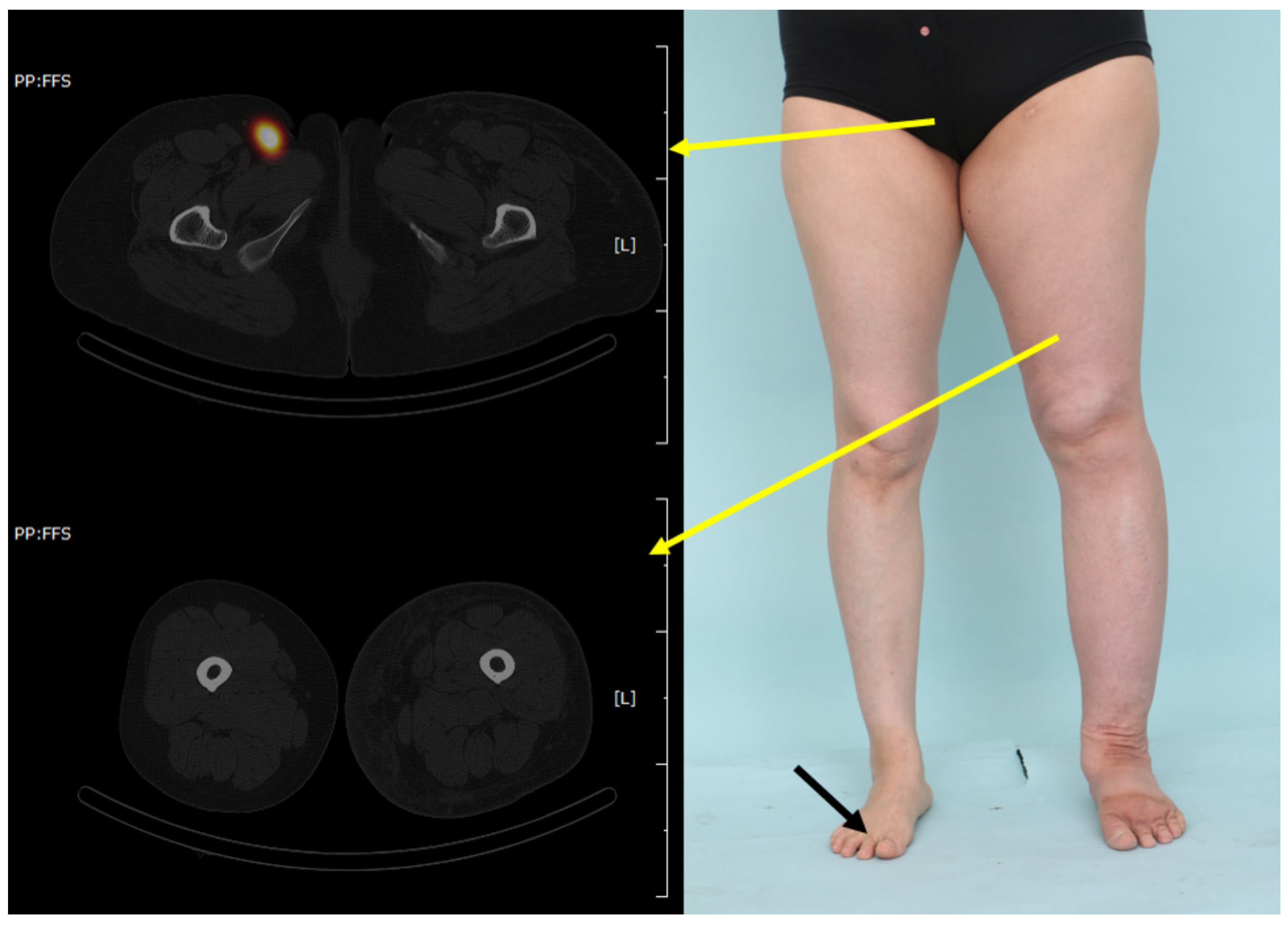 - Baulieu, F.; Bourgeois, P.; Maruani, A.; Belgrado, J.P.; Tauveron, V.; Lorette, G.; Vaillant, L. Contributions of SPECT/CT imaging to the lymphoscintigraphic investigations of the lower limb lymphedema. Lymphology 2013, 46, 106–119. [Google Scholar] [PubMed]