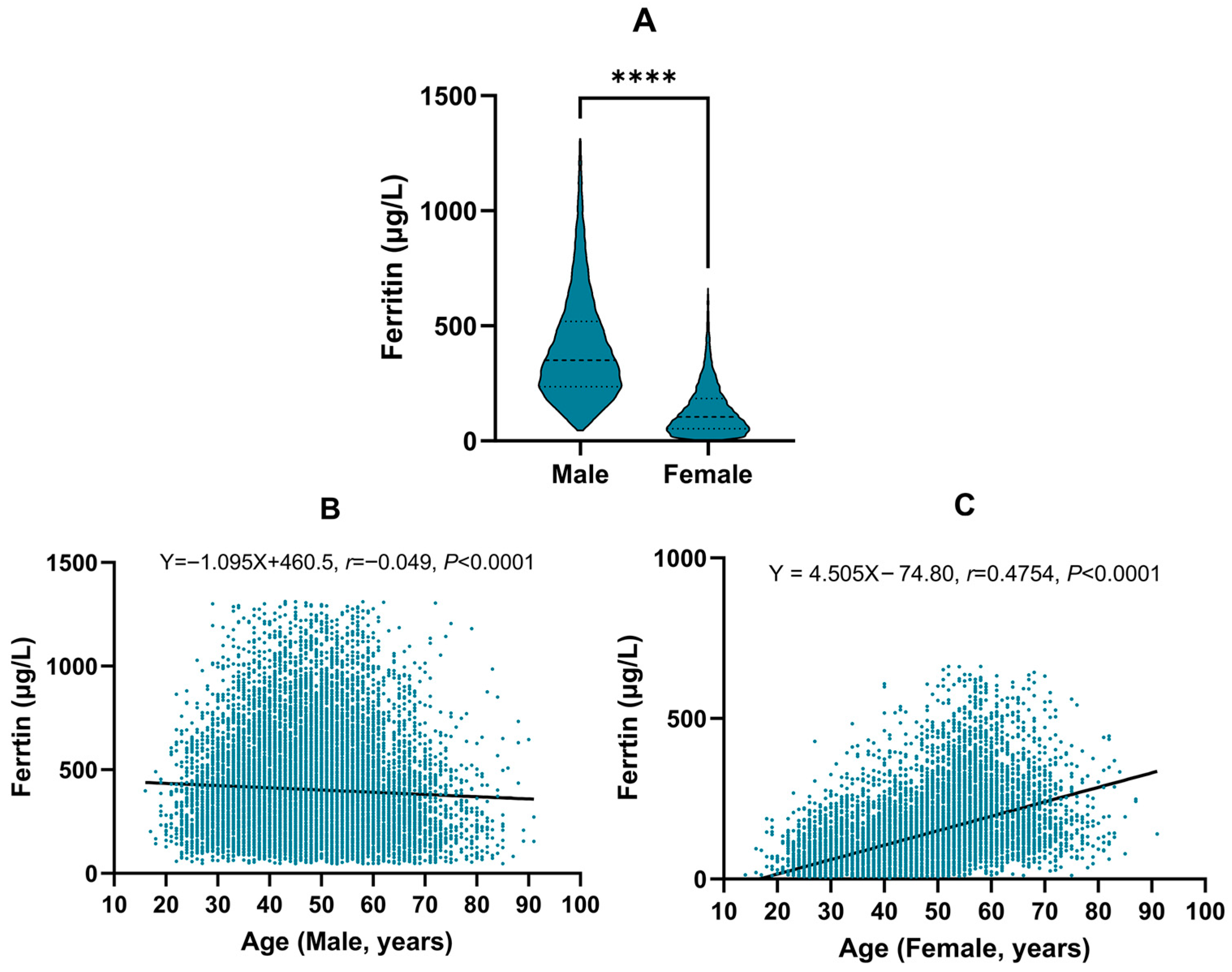 - Wang, Y.; Yu, X.; Fan, J.; Huang, M.; Fu, Y.; Zhang, H.; Kong, R.; Man, Q. Serum Ferritin in Geriatric Individuals in the Shanghai Region: Distribution, Correlations, and Reference Intervals. Clin. Lab. 2023, 69, 1664–1670. [Google Scholar] [CrossRef] [PubMed]