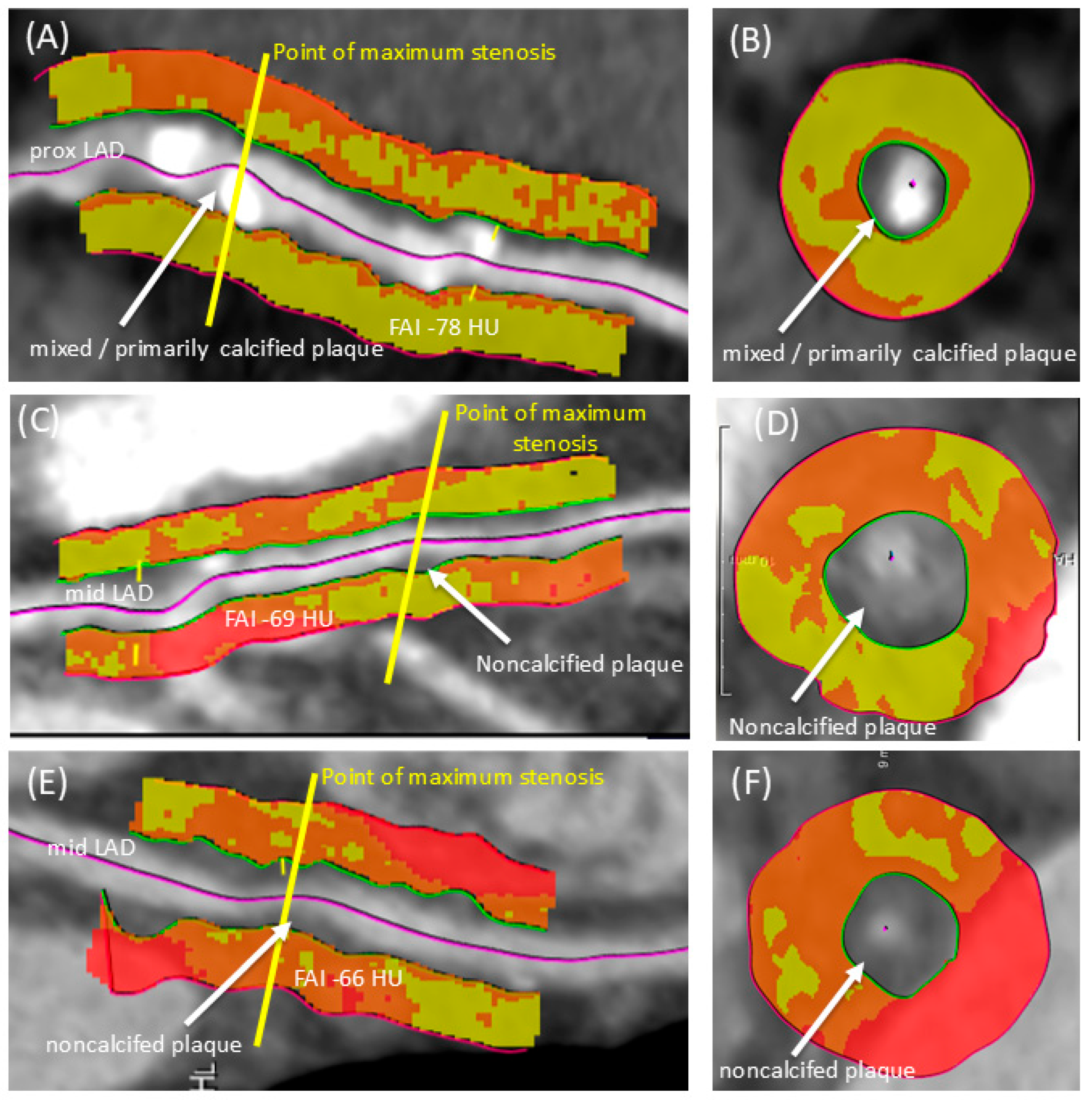 - Yan, H.; Zhao, N.; Geng, W.; Hou, Z.; Gao, Y.; Lu, B. Pericoronary fat attenuation index and coronary plaque quantified from coronary computed tomography angiography identify ischemia-causing lesions. Int. J. Cardiol. 2022, 357, 8–13. [Google Scholar] [CrossRef] [PubMed]