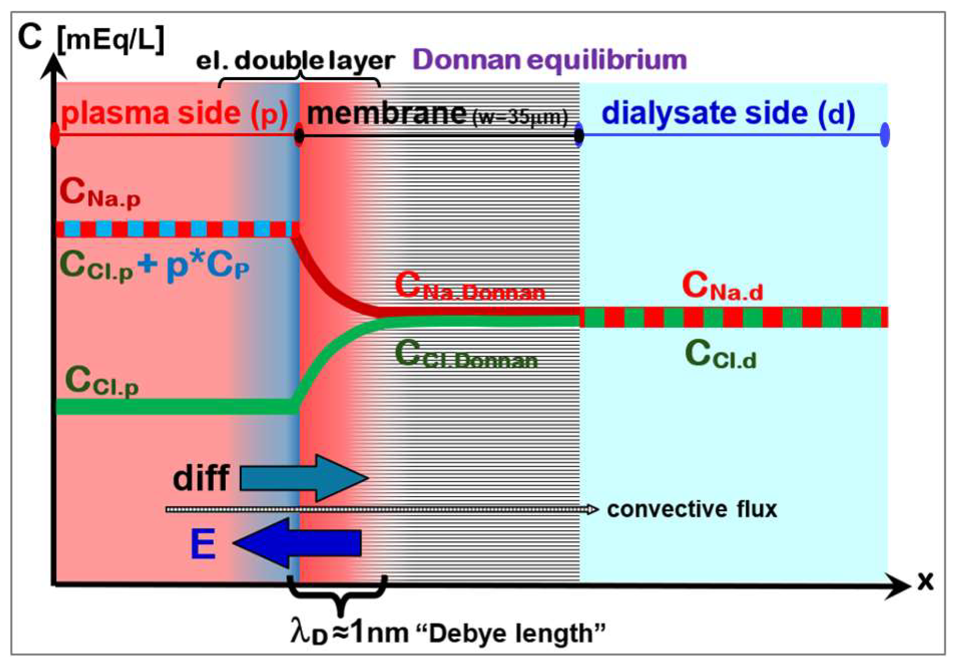 The diffusive flux is positive when the concentration in plasma is higher than in dialysate. This generates a solute transport from plasma to dialysate. With the definition of the permeability