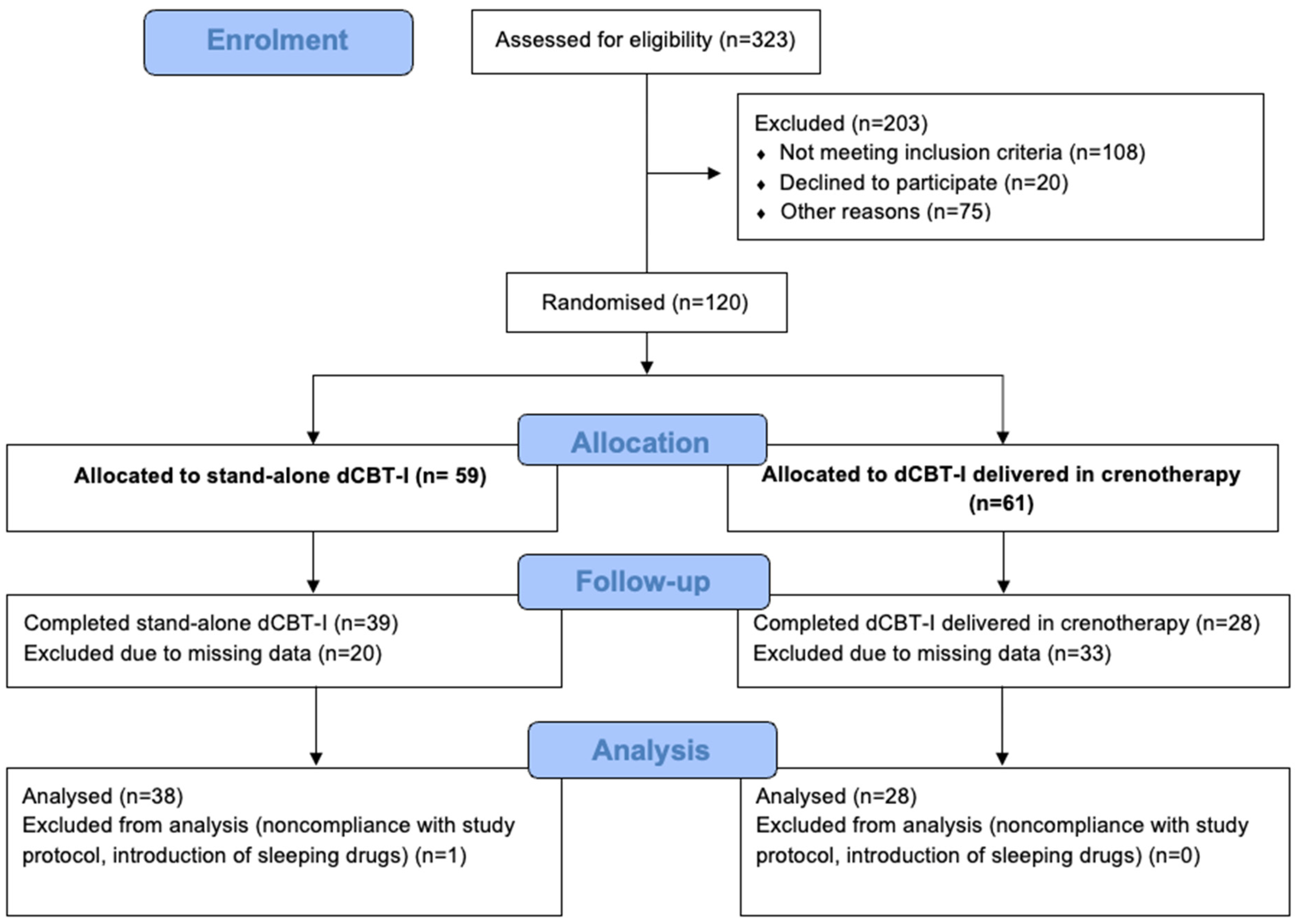 - Kyle, S.D.; Hurry, M.E.D.; Emsley, R.; Marsden, A.; Omlin, X.; Juss, A.; Spiegelhalder, K.; Bisdounis, L.; Luik, A.I.; Espie, C.A.; et al. The effects of digital cognitive behavioral therapy for insomnia on cognitive function: A randomized controlled trial. Sleep 2020, 43, zsaa034. [Google Scholar] [CrossRef]