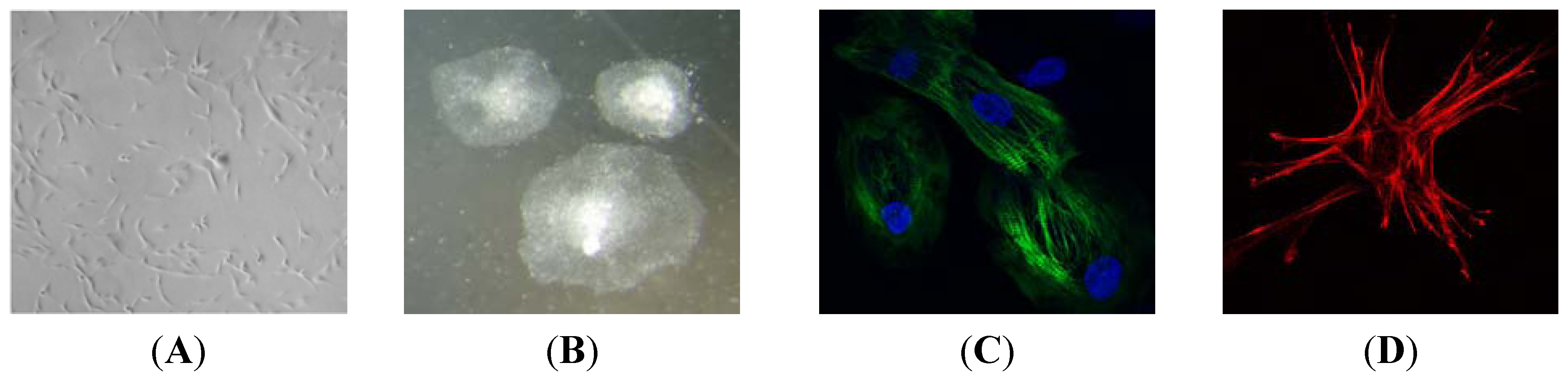 - Emmert, M.Y.; Wolint, P.; Wickboldt, N.; Gemayel, G.; Weber, B.; Brokopp, C.E.; Boni, A.; Falk, V.; Bosman, A.; Jaconi, M.E.; et al. Human stem cell-based three-dimensional microtissues for advanced cardiac cell therapies. Biomaterials 2013, 34, 6339–6354. [Google Scholar] [CrossRef] [PubMed]