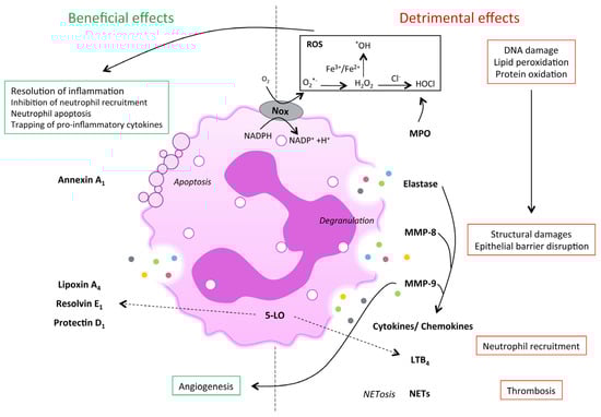 Despite neutrophils being the first immune cells recruited to the site of inflammation, their activity needs to be tightly regulated to limit collateral damage to the tissue and avoid evolution toward chronic diseases [,,].