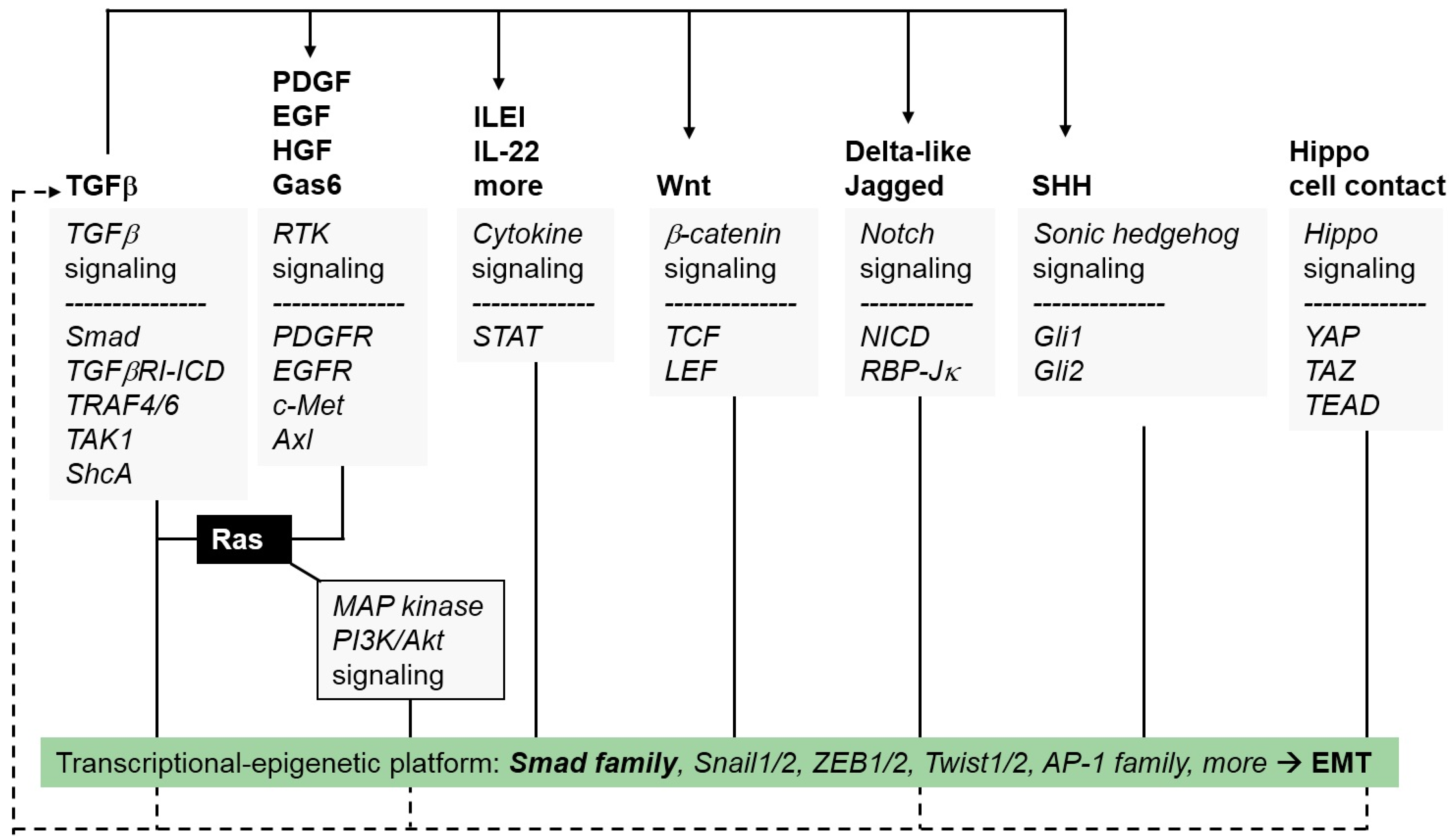 2.2. EMT Involves Changes in Secreted Growth Factors and Cytokines