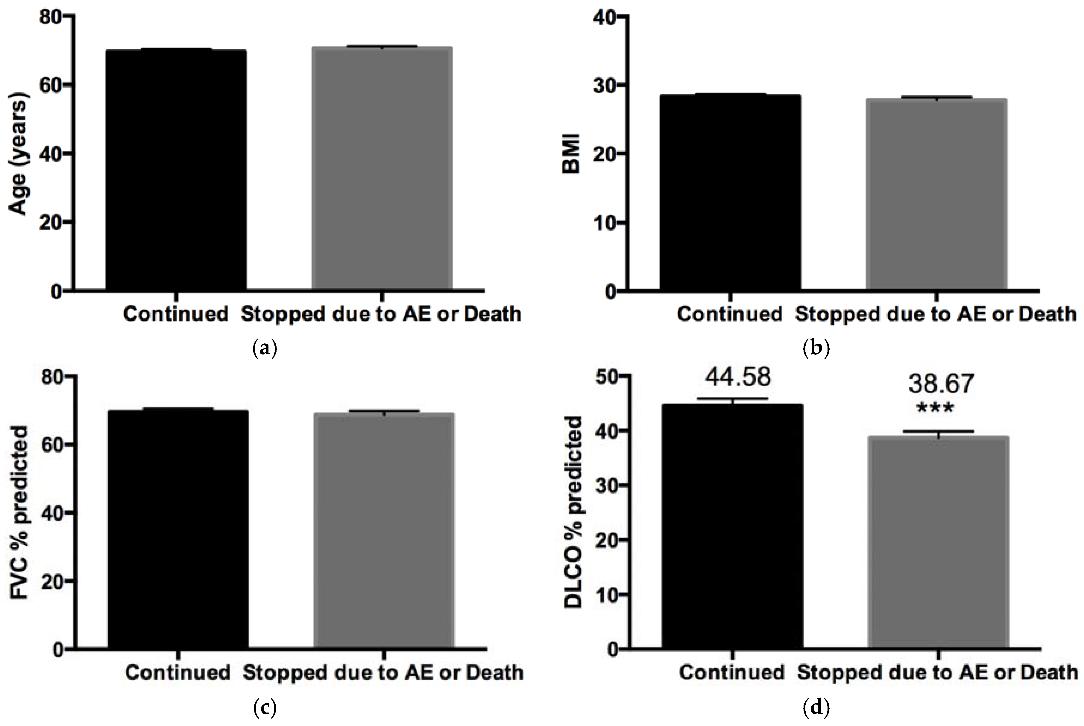 3.5. Adverse Events Are Common and Predominantly Gastrointestinal with Nintedanib