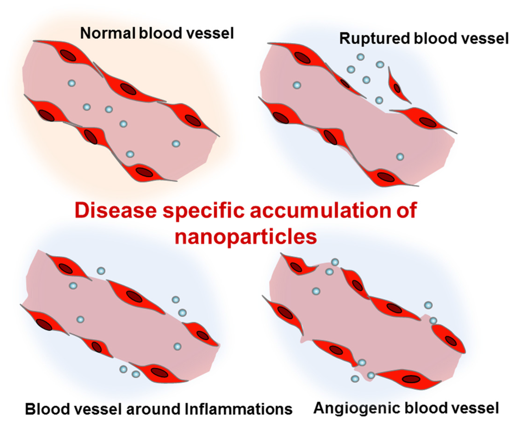 Enhanced permeation of disease-related blood vessels and targeted delivery of intravenously injected nanoparticles.