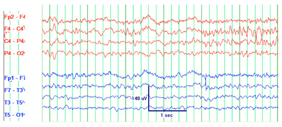 - Mei, L.P.; Li, L.P.; Ye, J.; Wang, Y.P.; Zhao, J.; Zhang, T. A special electroencephalography pattern might help in the diagnosis of antibody-positive encephalitis. Chin. Med. J. (Engl.) 2015, 128, 2474–2477. [Google Scholar] [PubMed]