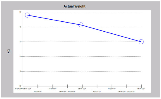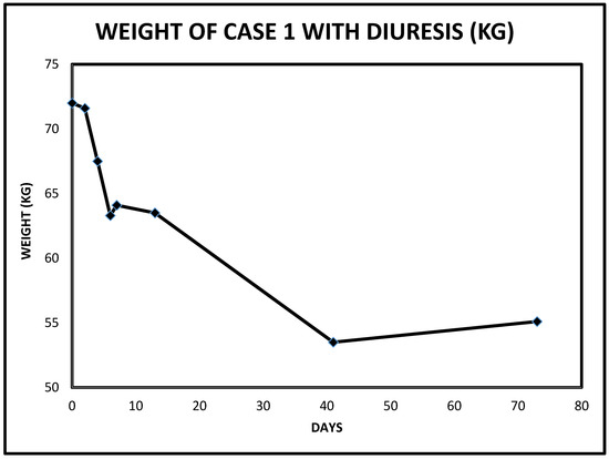 Weight changes following intravenous decongestive diuresis in Case 1.