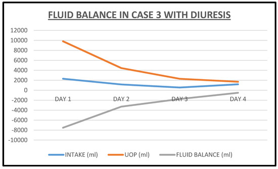 Fluid balance with total intake and urine output in Case 3 during the index admission.