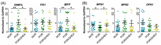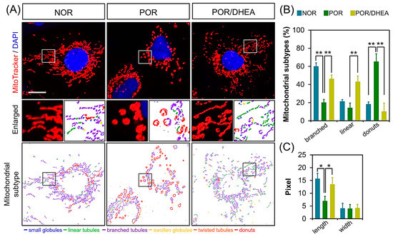 3.4. DHEA Restores Mitochondrial Morphology in PORs