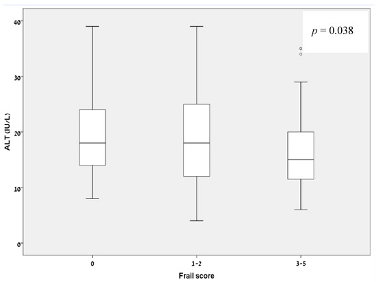 3.4. Correlation of Low ALT Levels and the FRAIL Questionnaire Ggroups