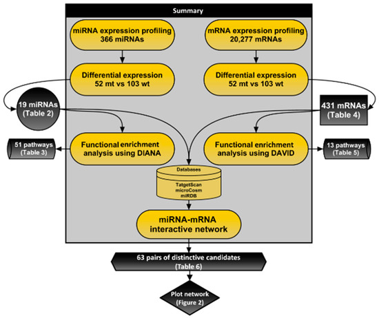 Flow diagram for predicting the target relationship between miRNA–mRNA pairs.