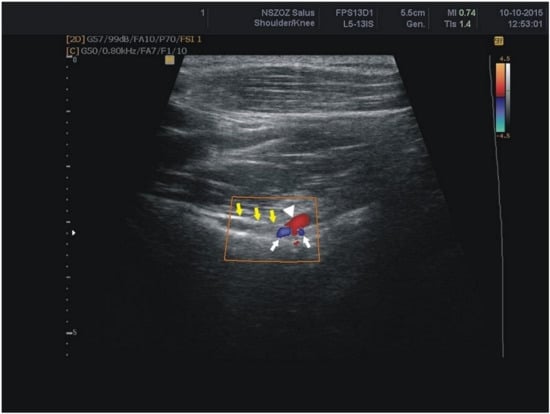 - Kowalska, B.; Sudoł-Szopińska, I. Normal and sonographic anatomy of selected peripheral nerves. Part II: Peripheral nerves of the upper limb. J. Ultrason. 2012, 12, 131–147. [Google Scholar] [CrossRef] [PubMed]