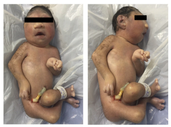 Newborn with 29 weeks gestational age showing microcephaly and arthrogryposis. The infantdied 5 min after birth (Case 10).