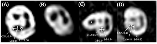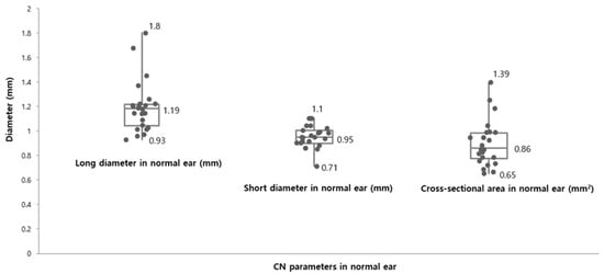 The mean of Ld, Sd, and CSA in the unaffected ears from the present study were 1.19 ± 0.13 mm, 0.95 ± 0.16 mm, and 0.89 ± 0.18 mm2, respectively (Figure 2).