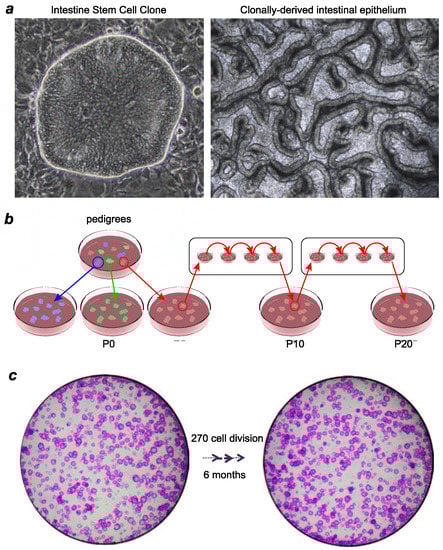 One of the most exciting directions in medicine is based on stem cell research, which holds the promise of treatments and cures for various diseases and conditions that have so far frustrated traditional pharmaceutical approaches. Both stem cell research and clinical trials in regenerative medicine are presently dominated by pluripotent stem cells: embryonic stem cells (ESC) and induced pluripotent stem cells (iPSCs). However, these remarkable cells face important and unresolved hurdles, including the risk of generating teratomas, the truly arduous and inefficient processes of directed commitment to desired lineages and the limited regenerative capacity of derived lineages [,,,,,]. The promise of pluripotent stem cells has largely overshadowed efforts to harness so-called “adult” or “somatic” stem cells intrinsic to regenerative tissues. Green and colleagues developed methods for cloning epidermal stem cells [] in their most immature and clonogenic form, which could be differentiated at will to yield a stratified squamous epithelium. The Green strategy has also been applied to capture stem cells from other stratified epithelia, including those of the corneal, thymic and airway epithelia [,,]. However, stem cells of columnar epithelial tissues, such as those of the gastrointestinal tract, liver and kidney, have resisted cloning in a manner that maintains their immaturity during proliferative expansion. Instead, many researchers maintain these columnar epithelia as regenerative “organoids” that contain a minor fraction of stem cells that drive their growth [,,]. While their potential for regenerative medicine is obvious [], organoids are labor-intensive, very slow to expand and mostly comprised of differentiated cells rather than regenerative stem cells. To overcome this significant barrier in adult stem cell biology, highly robust technologies have been developed to clone and propagate clonogenic, “ground-state” stem cells of the human intestine and colon []. These cultured stem cells show remarkable stability in their genomic integrity and epigenetic commitment programs, show unlimited replicative expansion and maintain high clonogenicity, suggesting tremendous potential in disease modeling and regenerative medicine.