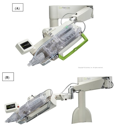 - Weisz, G.; Metzger, D.C.; Caputo, R.; Delgado, J.; Marshall, J.J.; Vetrovec, G.W.; Reisman, M.; Waksman, R.; Granada, J.F.; Novack, V.; et al. Safety and feasibility of robotic percutaneous coronary intervention: PRECISE (Percutaneous Robotically-Enhanced Coronary Intervention) study. J. Am. Coll. Cardiol. 2013, 61, 1596–1600. [Google Scholar] [CrossRef] [PubMed]