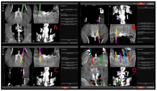 - Scheufler, K.-M.; Franke, J.; Eckardt, A.; Dohmen, H. Accuracy of image-guided pedicle screw placement using intraoperative computed tomography-based navigation with automated referencing. Part II: Thoracolumbar spine. Neurosurgery 2011, 69, 1307–1316. [Google Scholar] [CrossRef] [PubMed]
