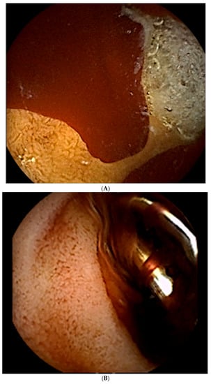 - Craenen, E.M.; Hofker, H.S.; Peters, F.T.; Kater, G.M.; Glatman, K.R.; Zijlstra, J.G. An upper gastrointestinal ulcer still bleeding after endoscopy: What comes next? Neth. J. Med. 2013, 71, 355–358. [Google Scholar] [PubMed]