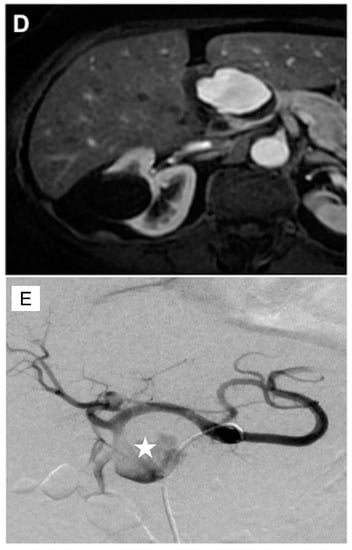 - Bloechle, C.; Izbicki, J.; Rashed, M.; El-Sefi, T.; Hosch, S.; Knoefel, W.; Rogiers, X.; Broelsch, C.E. Hemobilia: Presentation, diagnosis, and management. Am. J. Gastroenterol. 1994, 89, 1537–1540. [Google Scholar] [PubMed]