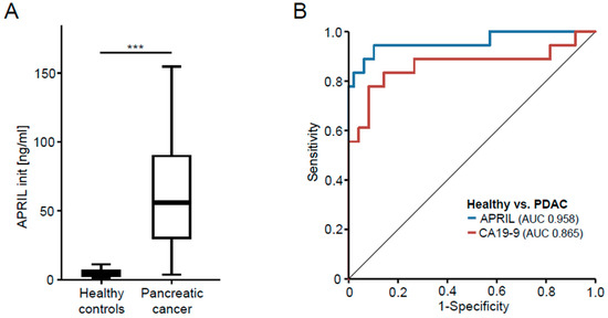 3.1. APRIL Serum Concentrations Are Elevated in Patients with Pancreatic Cancer