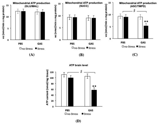 3.5. Psychosocial Stress Affects Mitochondrial OXPHOS Machinery and Reduces Energy Status in the Brain of GAS Immunized Mice