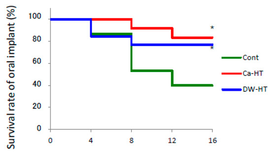 - Oshiro, W.; Ayukawa, Y.; Atsuta, I.; Furuhashi, A.; Yamazoe, J.; Kondo, R.; Sakaguchi, M.; Matsuura, Y.; Tsukiyama, Y.; Koyano, K. Effects of CaCl2 hydrothermal treatment of titanium implant surfaces on early epithelial sealing. Coll. Surf. B Biointerfaces 2015, 131, 141–147. [Google Scholar] [CrossRef] [PubMed]