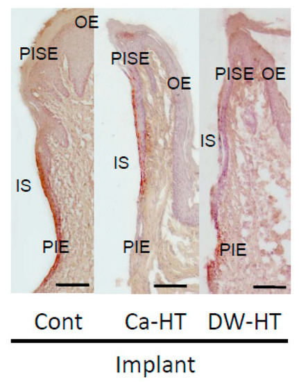 3.3. Down-Growth of PIE and Distribution of Laminin-332 around the Experimental Implants