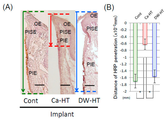 - Ikeda, H.; Shiraiwa, M.; Yamaza, T.; Yoshinari, M.; Kido, M.A.; Ayukawa, Y.; Inoue, T.; Koyano, K.; Tanaka, T. Difference in penetration of horseradish peroxidase tracer as a foreign substance into the peri-implant or junctional epithelium of rat gingivae. Clin. Oral Implants Res. 2002, 13, 243–251. [Google Scholar] [CrossRef]