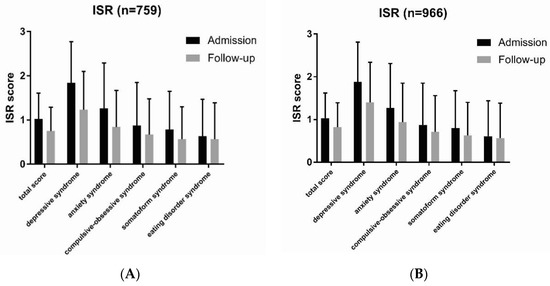 ICD-10 symptom loads according to ICD-10 symptom rating (ISR) were determined at admission (n = 966), discharge (n = 966), and follow-up (n = 759) (Table 1).