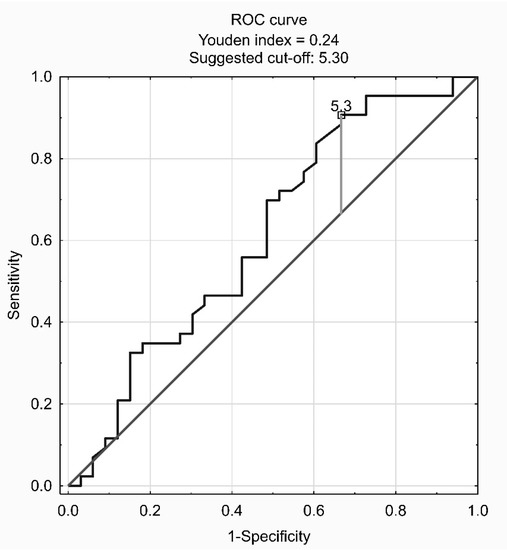 Statistical analysis was performed using the “Dell Statistica 13” software (Dell Inc., Round Rock, TX, USA). Quantitative data are presented as mean and standard deviation. Qualitative variables are expressed as percentage values. Significant statistical differences between arithmetic means were determined by the Mann–Whitney U test and between percentage values by the chi-square test. To determine the relationship between the analyzed variables, a correlation and regression analysis was performed. Parameters of the model obtained in the regression analysis were estimated using the least squares method. Moreover, the test accuracy was assessed based on receiver operating characteristic (ROC) analysis. Statistical significance was set at p < 0.05.