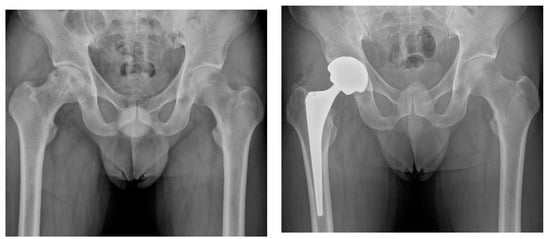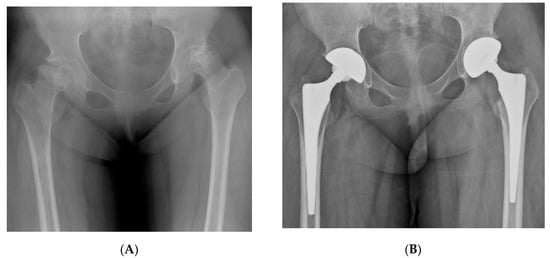 Prolonged treatment with high doses of corticosteroids increases the frequency of systemic adverse events. A serious corticosteroid-induced complication in the musculoskeletal system is osteonecrosis of the femoral head (ONFH). A large necrotic lesion frequently causes severe hip pain, which significantly impairs the quality of life. Although total hip arthroplasty (THA) has become the most successful surgical option for treating painful ONFH, a proportion of early failure in THA is inevitable [,]. The three leading causes of reoperation in contemporary THA are recurrent dislocation, periprosthetic joint infection (PJI), and periprosthetic femoral fracture (PFF), all of which are still challenging situations.