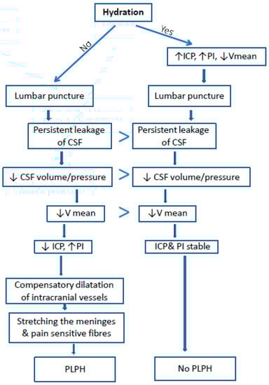 PLPH is only one type of headache; however, PLPH patients often have a medical history of various types of headaches. The level of hydration affects headaches in general. It is known that dehydration promotes the occurrence of migraine and other types of headaches [19,20]. Spigt noticed that increased hydration reduced the number of pain days in patients with migraine and tension headache [19]. Perhaps pre-puncture hydration prevents the occurrence of PLPH not only by a mechanical CBV increase but also by means of another mechanism.