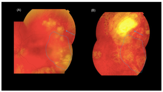 - Rutzen, A.R.; Ortega-Larrocea, G.; Dugel, P.U.; Chong, L.P.; Lopez, P.F.; Smith, R.E.; Rao, N.A. Clinicopathologic Study of Retinal and Choroidal Biopsies in Intraocular Inflammation. Am. J. Ophthalmol. 1995, 119, 597–611. [Google Scholar] [CrossRef]
