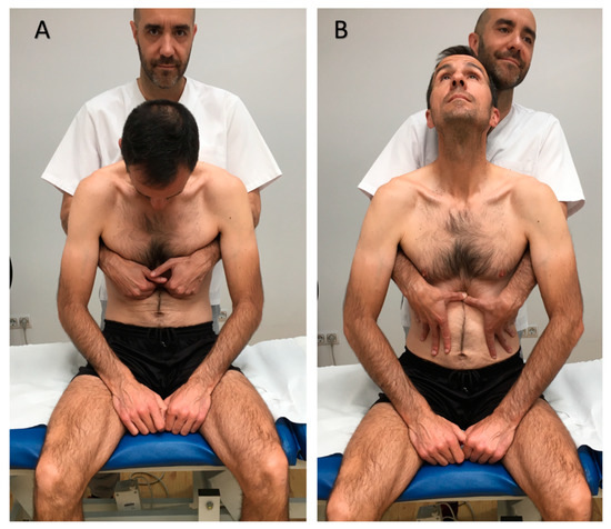 The sham technique in control group (CG) was performed by the same investigator. In this case, the investigator maintained her hands in contact with the patient’s ribs. The patient had to reproduce the same deep breathing as the intervention group for 5 min; however, the investigator’s hands only maintained physical contact with the patient, without exerting any pressure, or putting any incentive or restriction on the tissues or the movements of the thoracic cage.